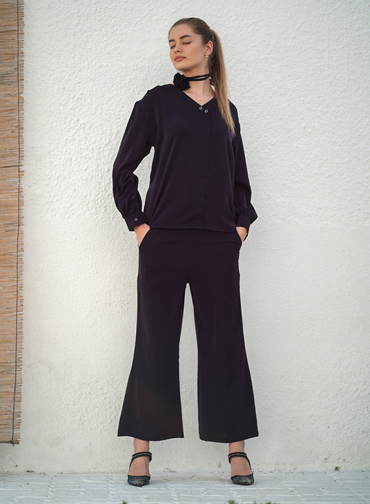 Serene Floral Co-ord (Shirt & Trouser) - Black