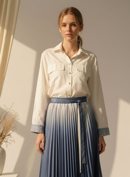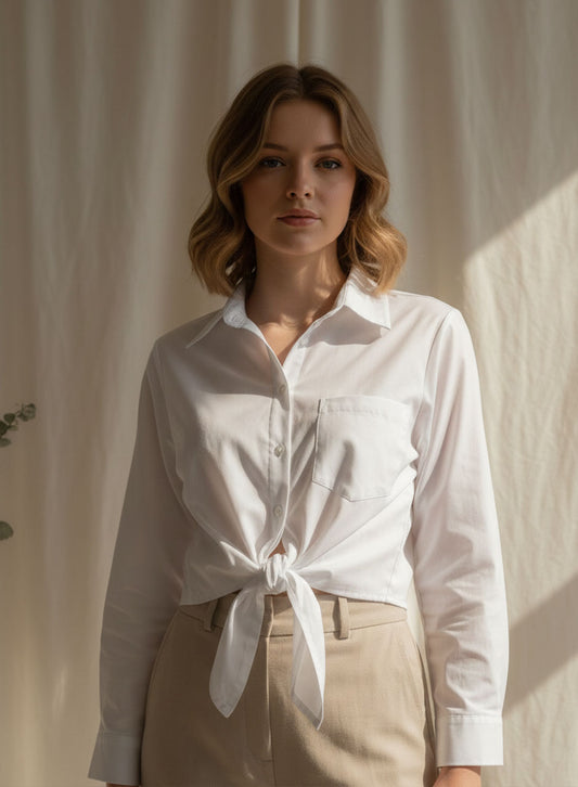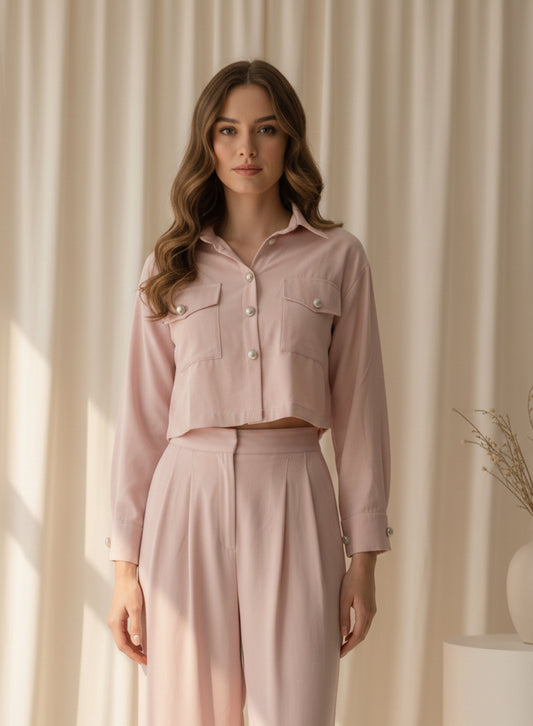 Two-Piece Tie Knot Shirt And High Waisted Trouser (Ash)