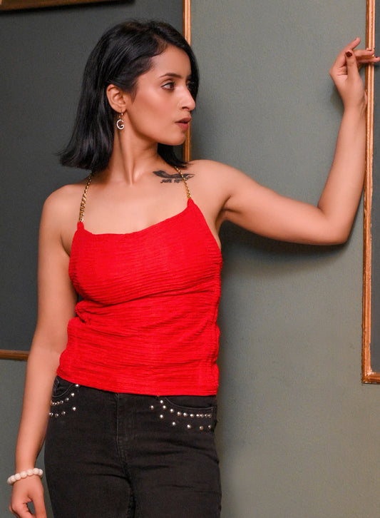 Gold Chain Strap Halter Crop Top -Scarlet Red