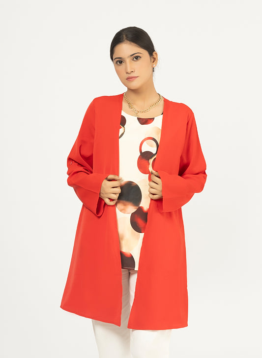 Red Cardigan With Printed Inner Top