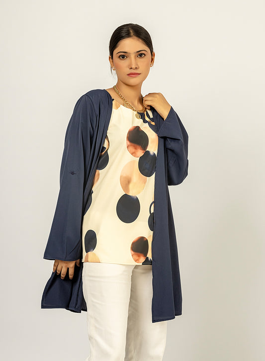 Navy Blue Cardigan With Printed Inner Top